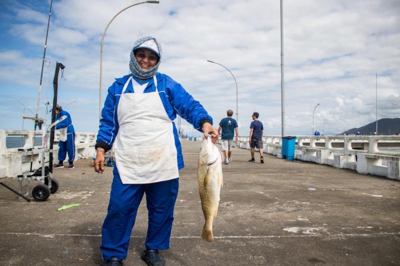 Cada atleta doa 2 kg de alimentos não perecíveis e os peixes capturados, que são destinados a uma entidade beneficente do município.