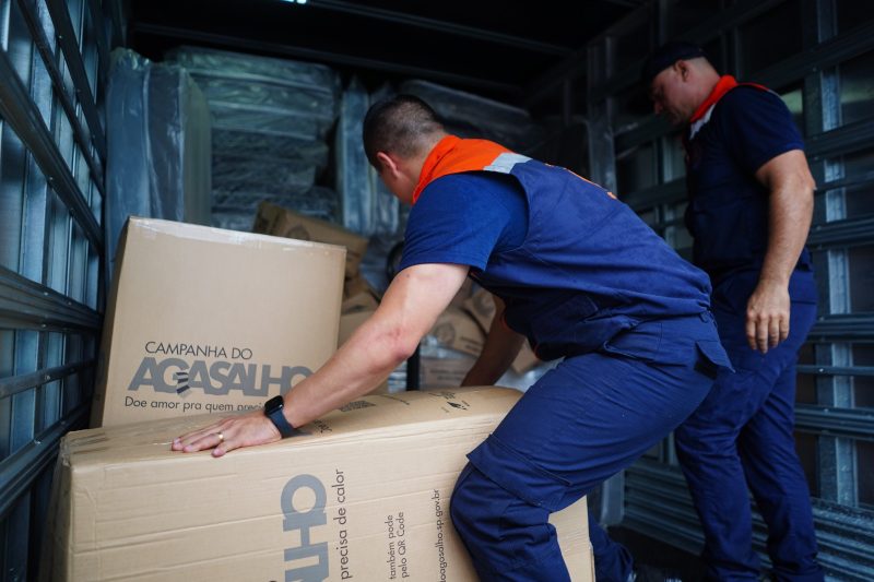 Apoio geral: 10 caixas de roupas (masculinas, femininas e infantis), 3 caixas de sapatos, 2 caixas de brinquedos, 1 cadeira de rodas, 75 kg de ração para cães e 50 kg para gatos