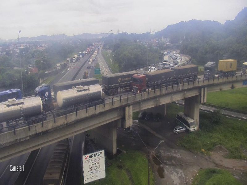 Além disso, no sentido SP, há lentidão no trecho do km 11 ao km 10.