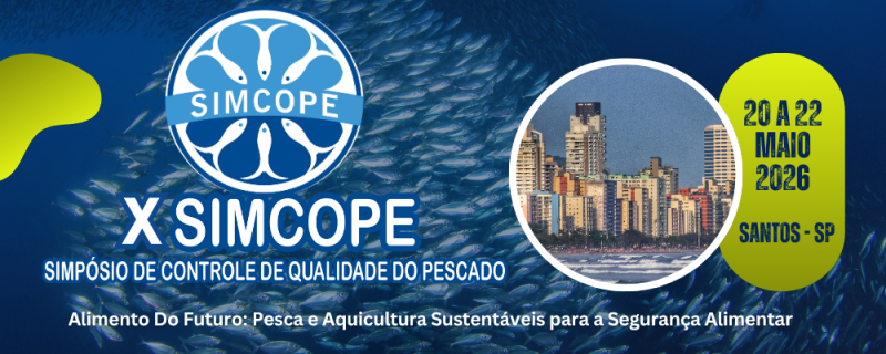 O Instituto de Pesca (IP-APTA), da Secretaria de Agricultura e Abastecimento do Estado de São Paulo, promoverá, de 20 a 22 de maio de 2026, em Santos (SP), a 10ª edição do SIMCOPE – Simpósio de Controle de Qualidade do Pescado.