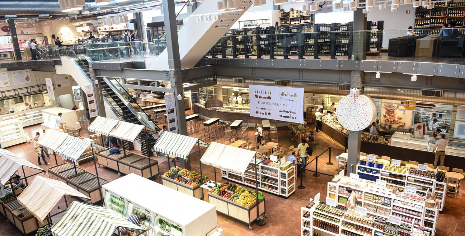 Além de saborear os pratos nas belas estruturas do mercadão italiano também é possível comprar vários alimentos para levar para a casa — águas, vinhos, carnes, queijos, massas, doces e muito mais.