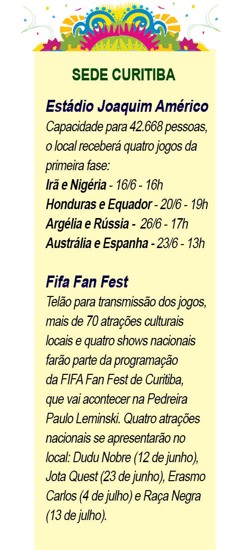 P13Com uma população de 1,8 milhão de habitantes, Curitiba – que recebe quatro jogos no Mundial – oferece inúmeros atrativos para quem deseja conhecer a capital do Paraná além do estádio Joaquim Américo, do Atlético Paranaense. Uma boa dica é o passeio pela Linha Turismo, que circula nos principais pontos turísticos.