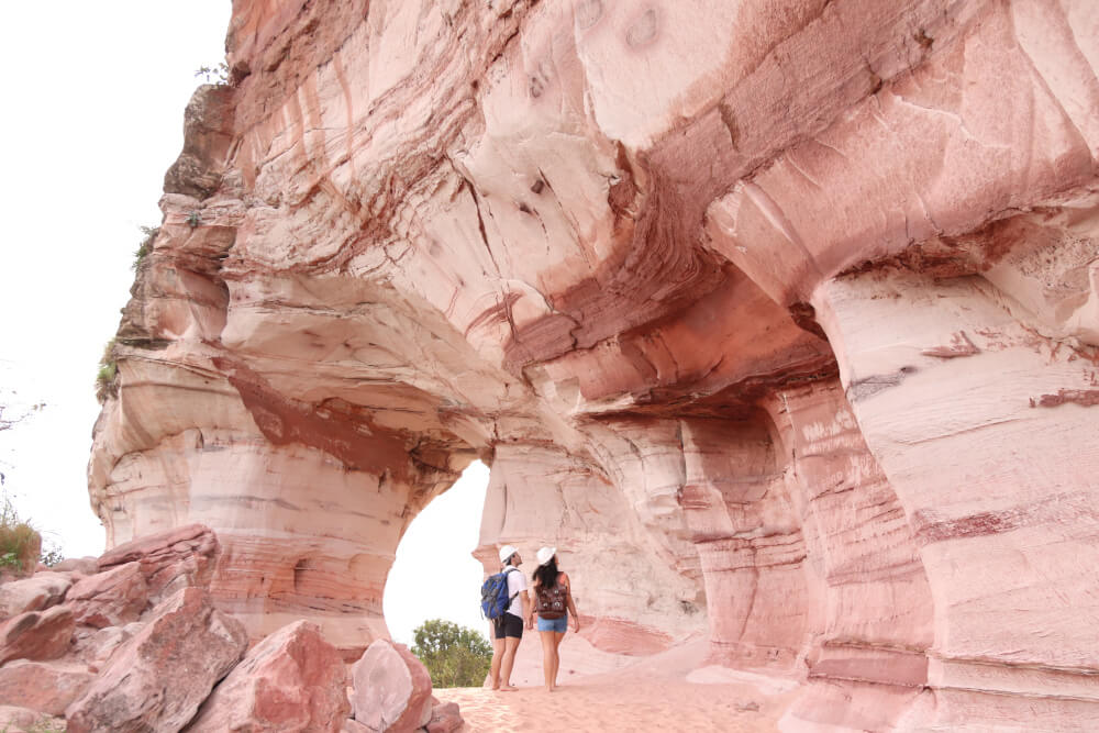 A Pedra Furada, em Ponte Alta do Tocantins, é uma das formações rochosas mais fotografadas do Jalapão. Esculpida pela ação do vento ao longo dos anos, a estrutura chama atenção principalmente ao pôr do sol, quando as tonalidades do arenito ganham ainda mais destaque.